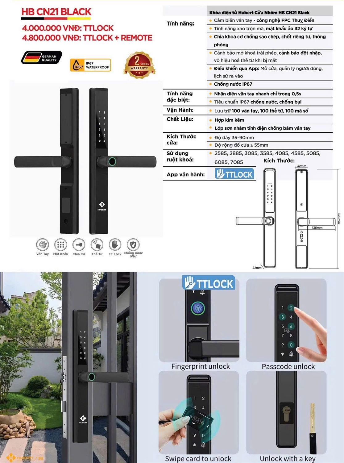 Khóa cửa nhôm CL.HB-CN21 BLACK(New) TTLock