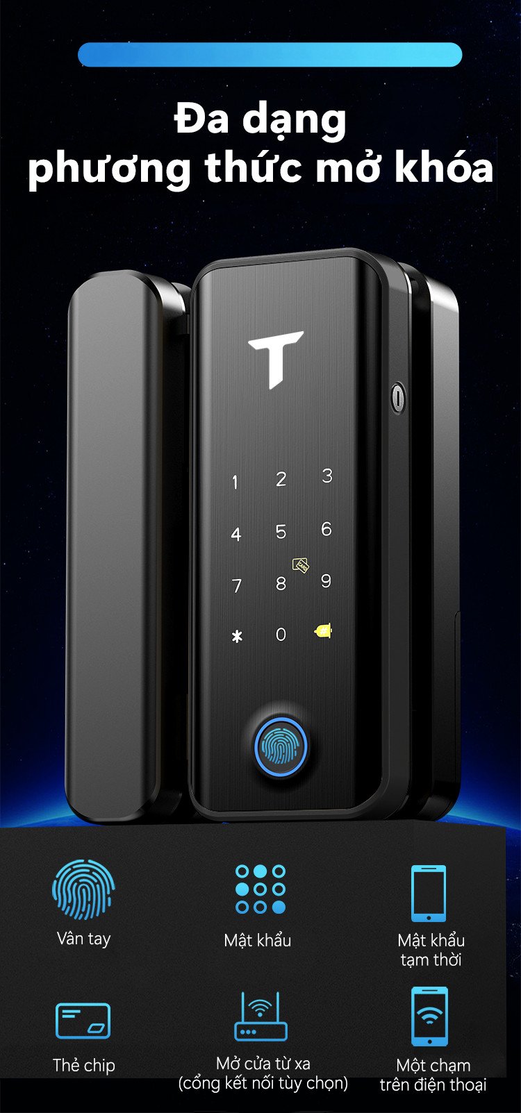 Khoá thông minh G4 đa dạng phương thức mở khóa: vân tay, mật khẩu, thẻ chip, chìa cơ, app TTLOCK, Remote thông qua getway.