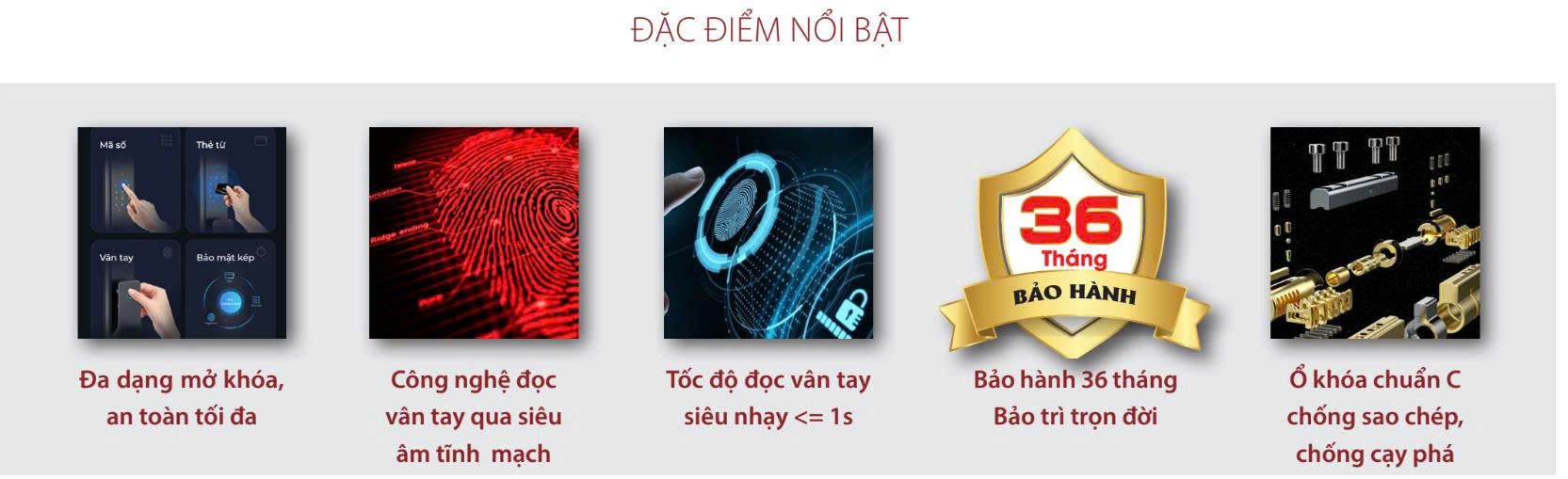 Khóa Thông Minh AC-996F được trang bị năm phương thức mở khóa chính, mỗi phương thức đều tích hợp các công nghệ tiên tiến nhằm mang lại sự tiện lợi và an toàn tối đa cho người dùng: