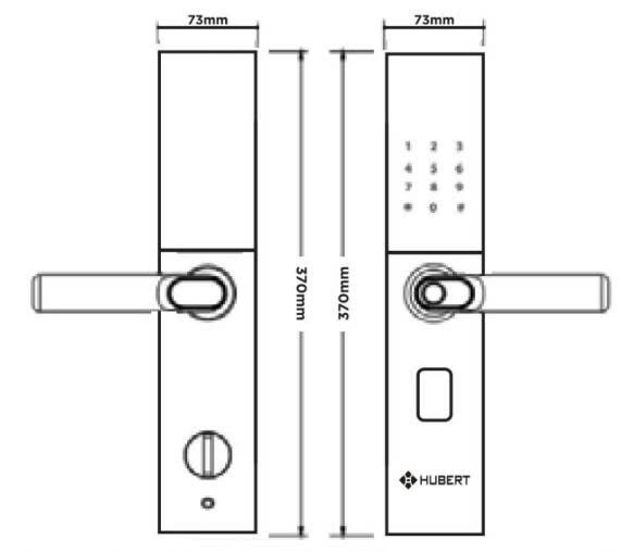 Kích Thước Linh Hoạt: Phù hợp với cửa có độ dày từ 40-90mm và độ rộng đố cửa từ 80mm trở lên, khóa điện tử Hubert dễ dàng lắp đặt trên nhiều loại cửa gỗ khác nhau.