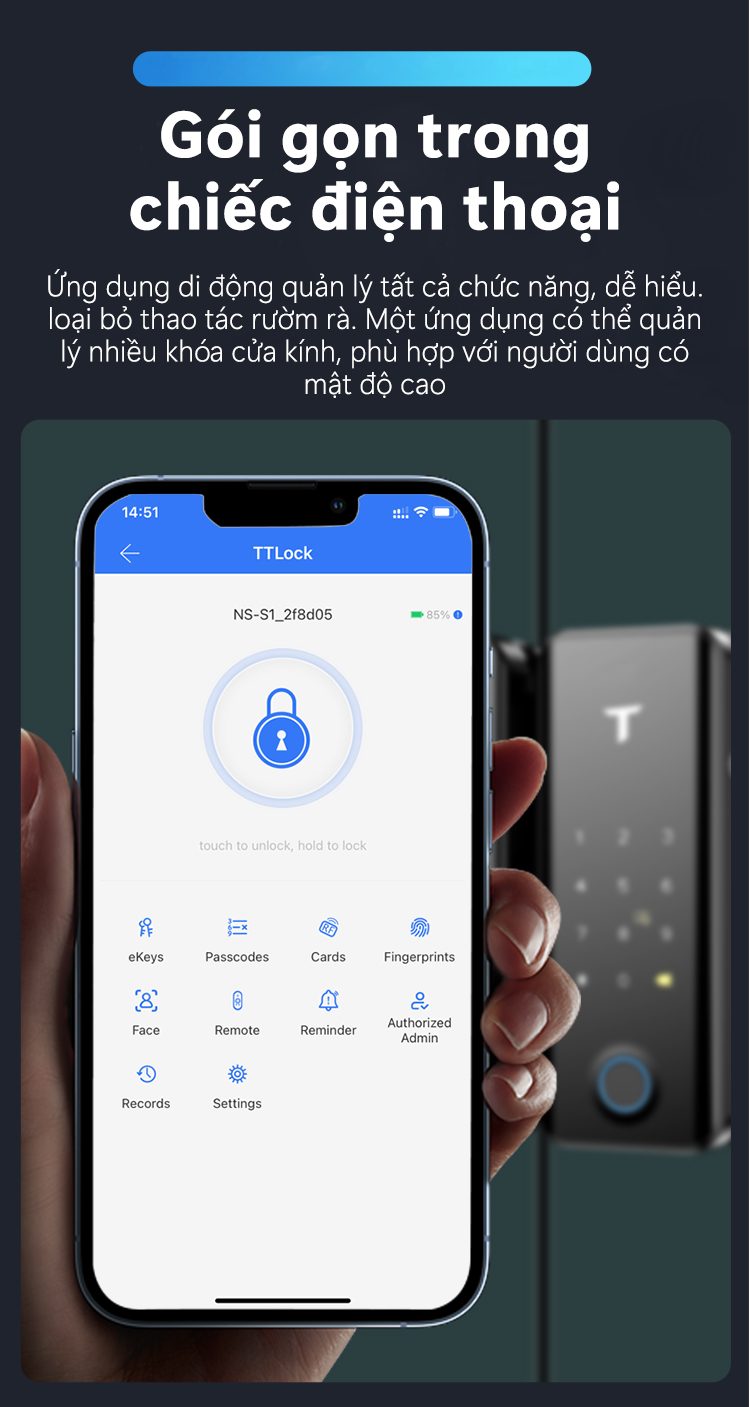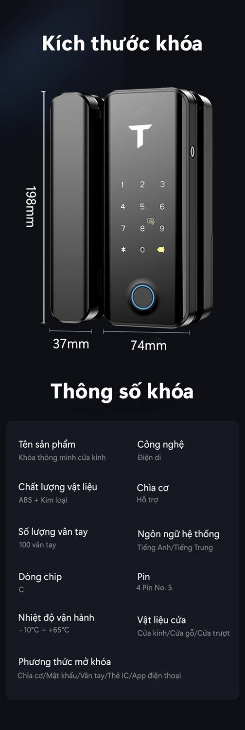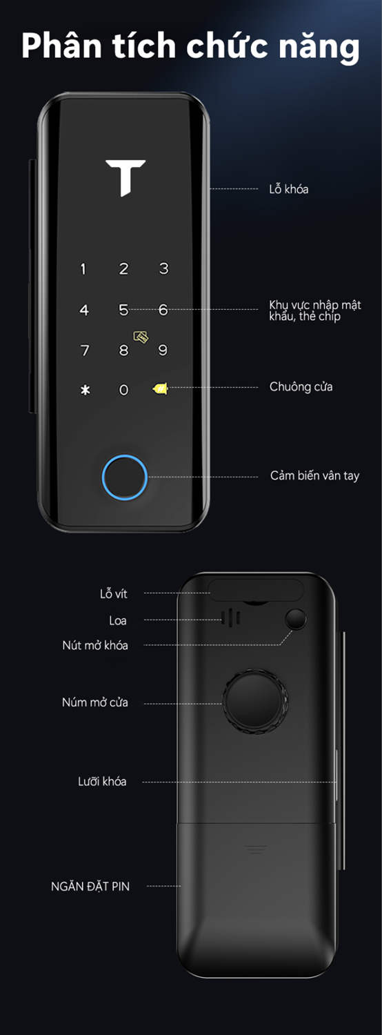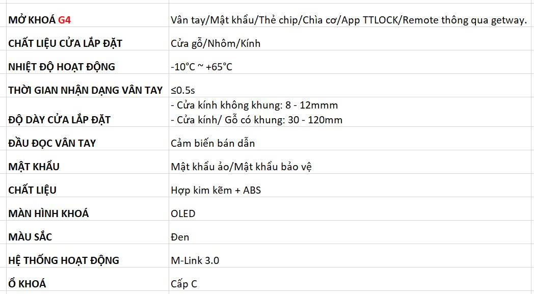 Khoá thông minh G4 đa dạng phương thức mở khóa: vân tay, mật khẩu, thẻ chip, chìa cơ, app TTLOCK, Remote thông qua getway.