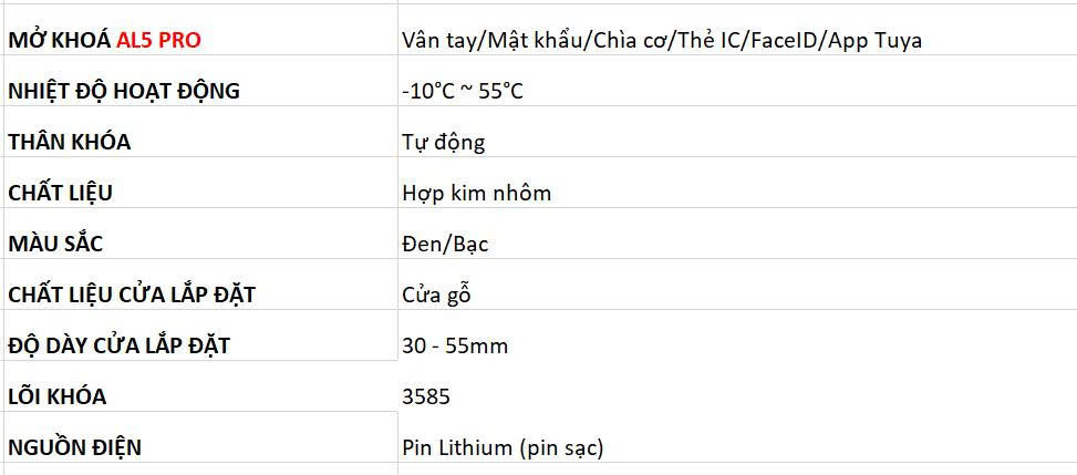 Khóa thông minh Tenon AL5 Pro nổi bật với tính năng mở khóa bằng nhân diện khuôn mặt 3D và các phương thức mở khóa khác, đạt tiêu chuẩn chống nước chuẩn IP65 giúp khóa hoạt động bền bỉ trong mọi điều kiện thời tiết mang đến sự tiện lợi và an toàn cho người dùng. Kết nối Wifi App Tuya cho phép quản lý, theo dõi khóa từ xa dễ dàng.